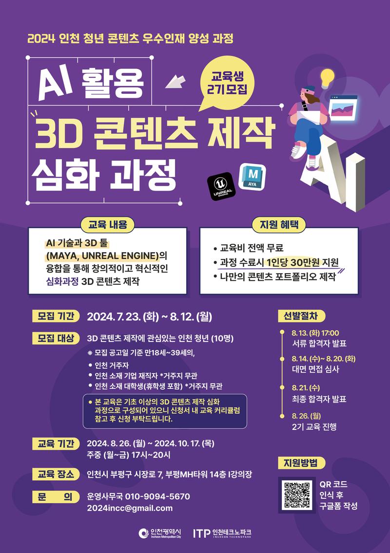 [2024 인천 청년 콘텐츠 우수인재 양성 과정] AI 활용 3D 콘텐츠 제작 심화 과정