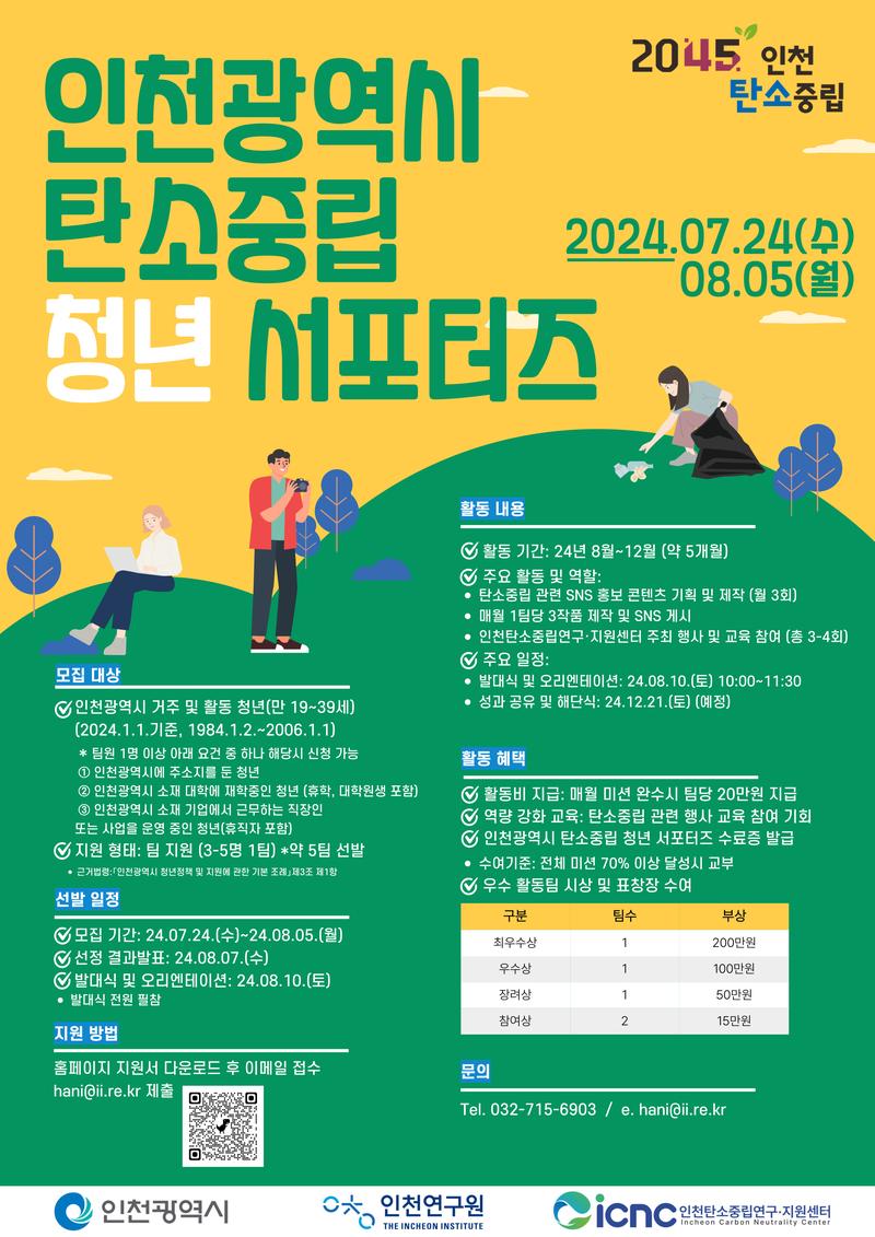 인천광역시의 탄소중립 실천을 이끌어갈 청년 여러분의 많은 관심과 참여 바랍니다.