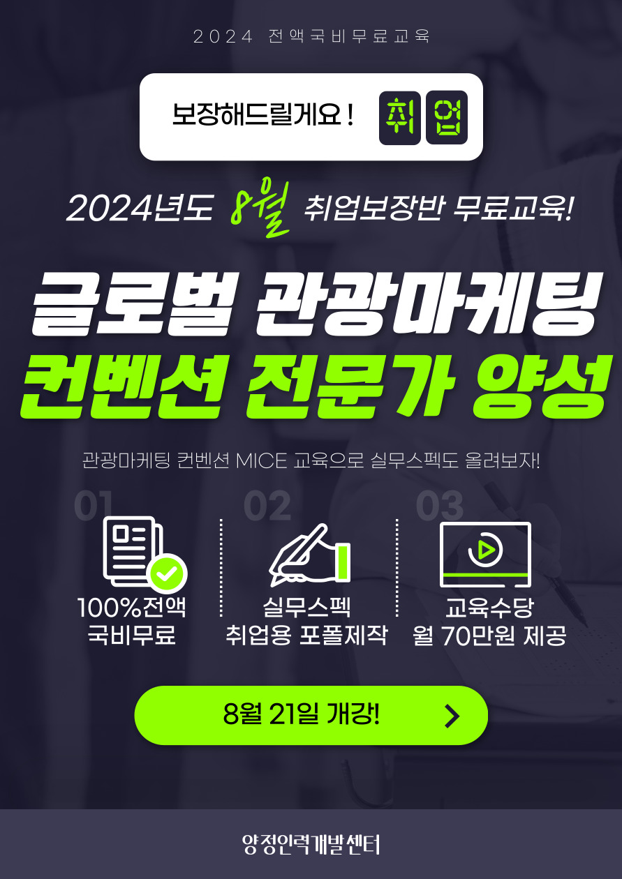 - 교육명 : 글로벌 관광마케팅 컨벤션 전문가 양성