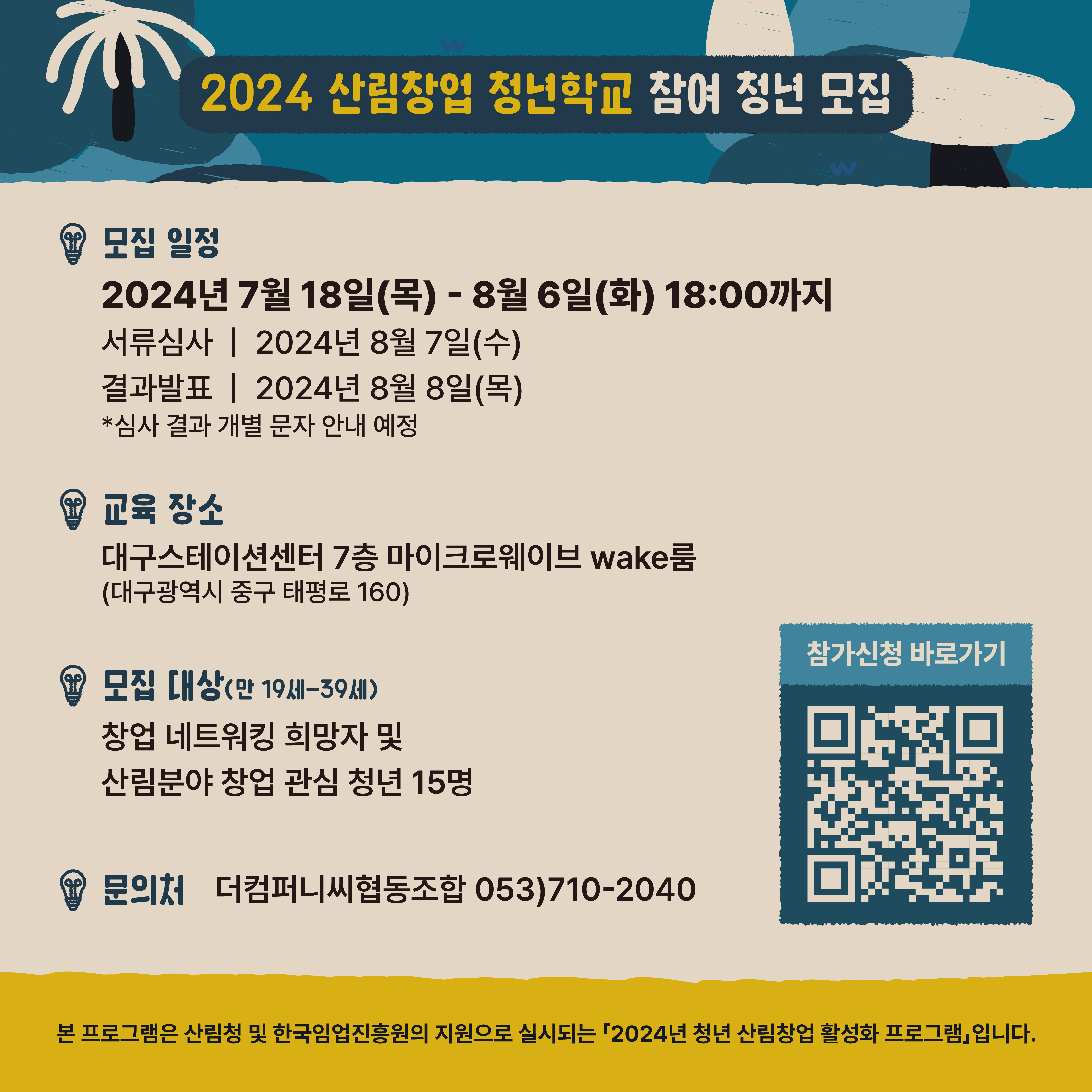 창업을 꿈꾸는 청년 중 🌲산림분야 접목에 관심있는 분들의 많은 참여 바랍니다!😀