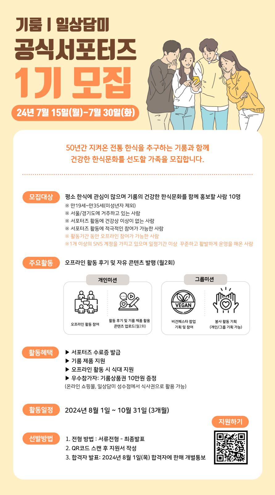 - 평소 한식에 관심이 많으며 기룸의 건강한 한식문화를 함께 홍보할 사람 10명