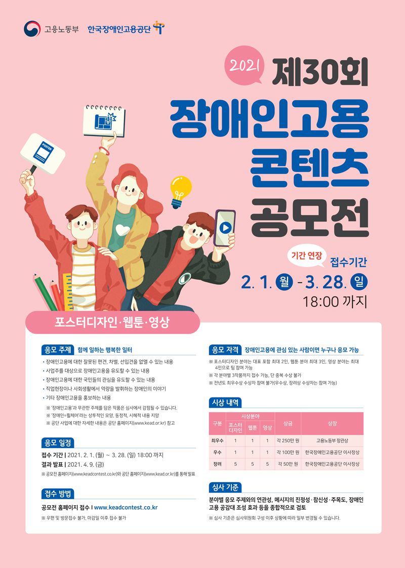 - 접수 기간:‘21. 2. 1.(월) ∼ 3. 28.(일) 18:00 까지