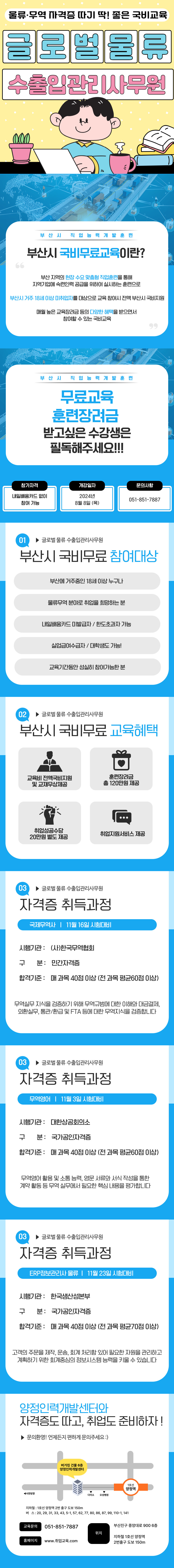 🧡부산시 직업능력개발훈련 글로벌 물류/수출입관리 사무원 교육 🧡