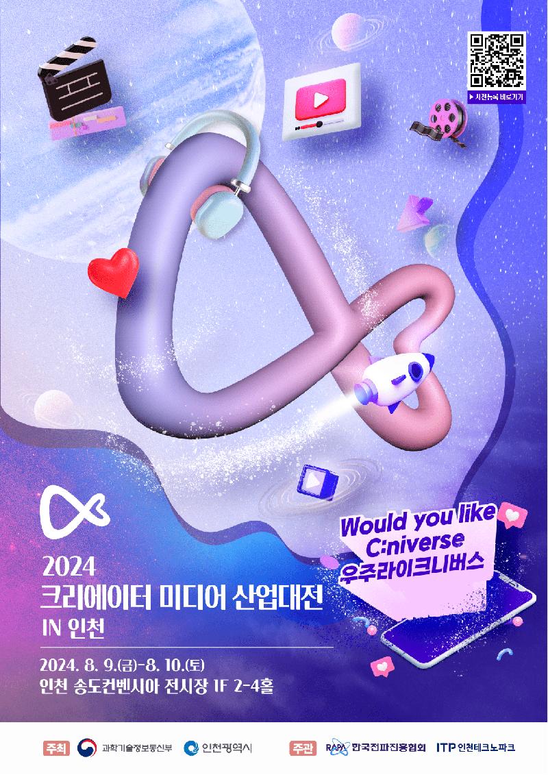 🎉 2024 크리에이터 미디어 산업대전 in 인천 🎉 Would you like C:niverse? 크리에이터 세계에 함께할래?"