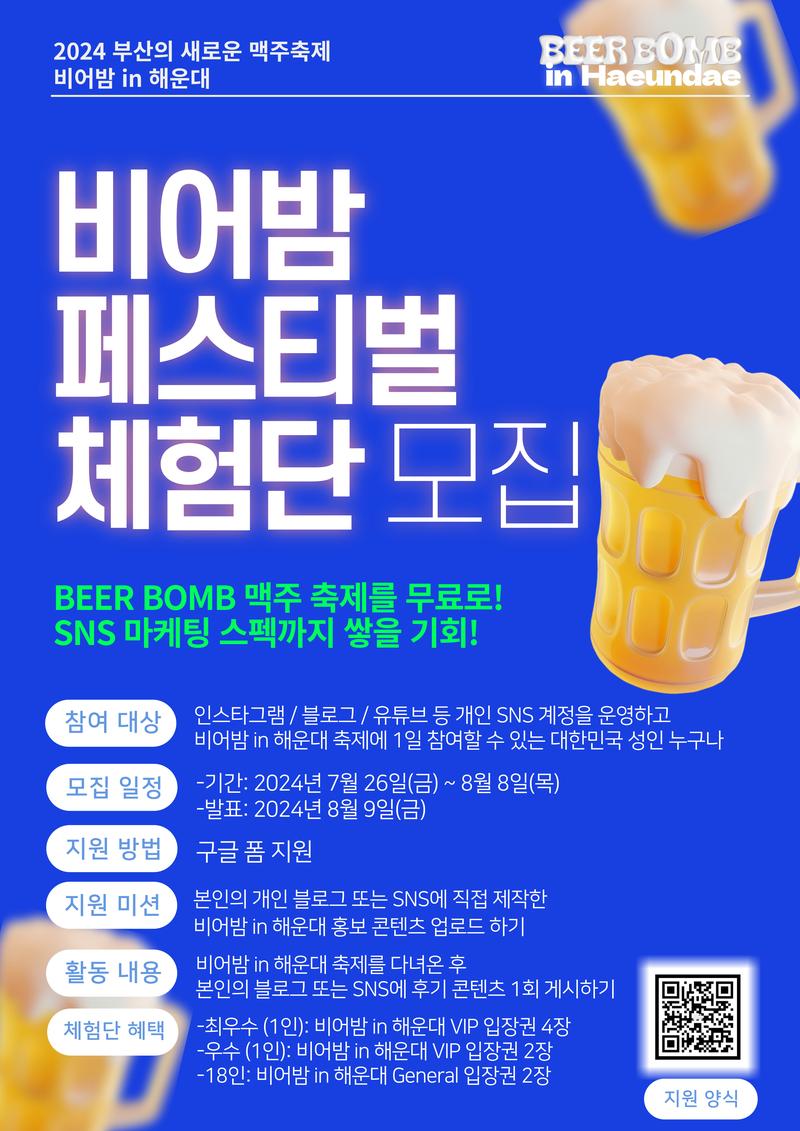 -2024월 8월 15일(목) ~ 8월 18일(일) 비어밤 in 해운대 축제 기간 중 1일 방문하실 수 있는 분