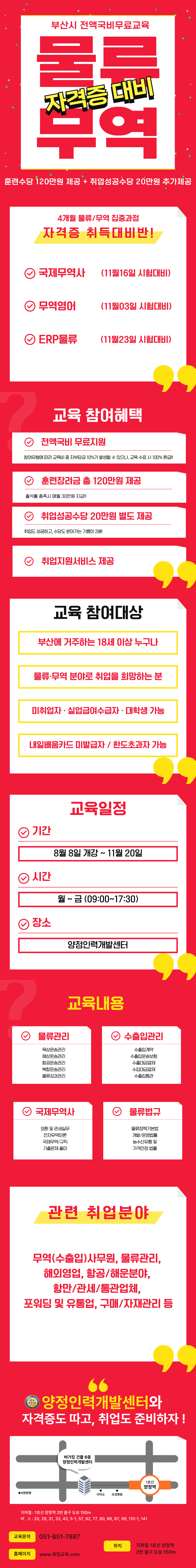 - 국제무역사, erp물류, 무역영어, 물류관리사 등의 자격증대비 교육