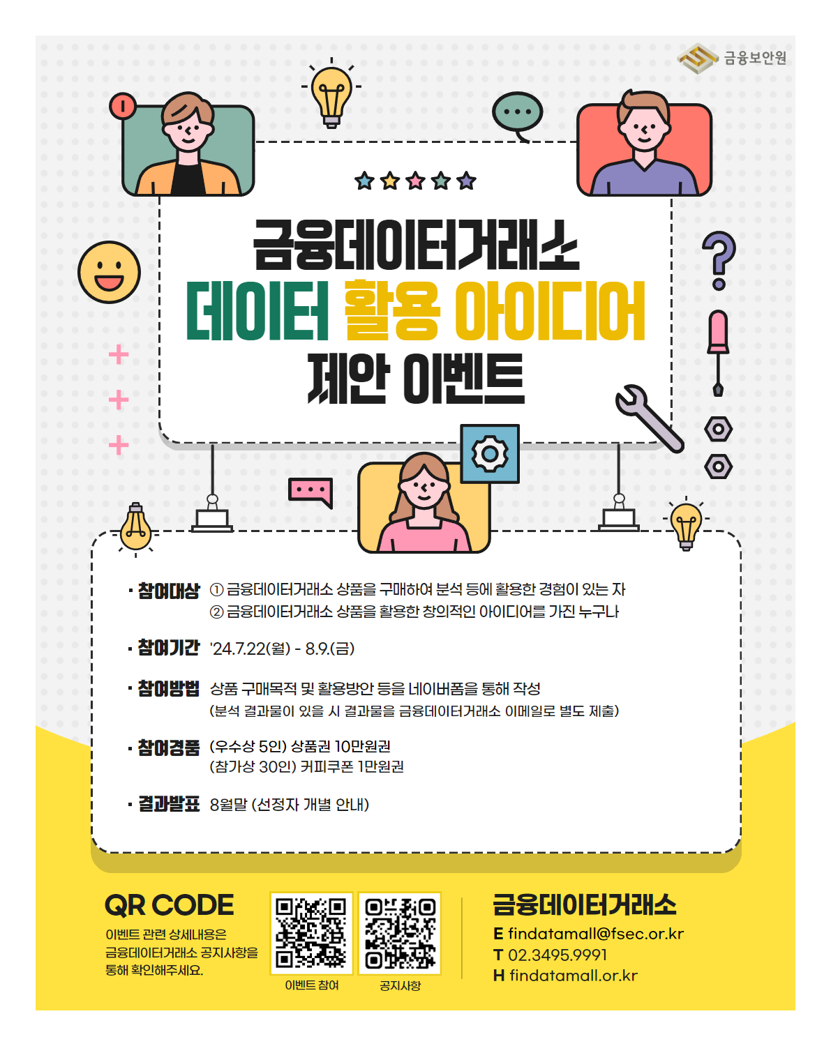 금융데이터거래소에서 데이터 활용 아이디어 제안 이벤트를 진행합니다.