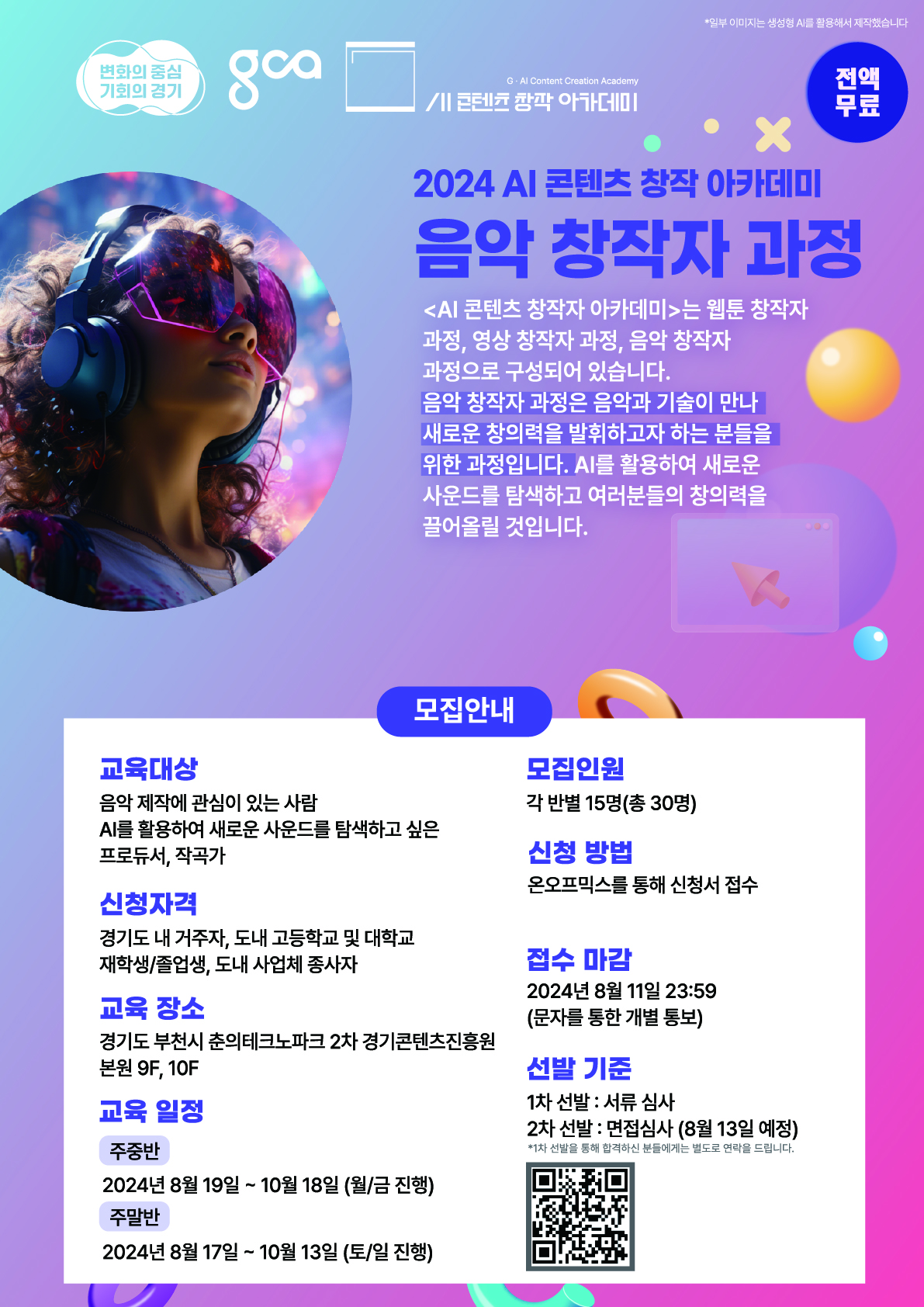 '2024 AI 콘텐츠 창작 아카데미' 음악과정 교육생 모집