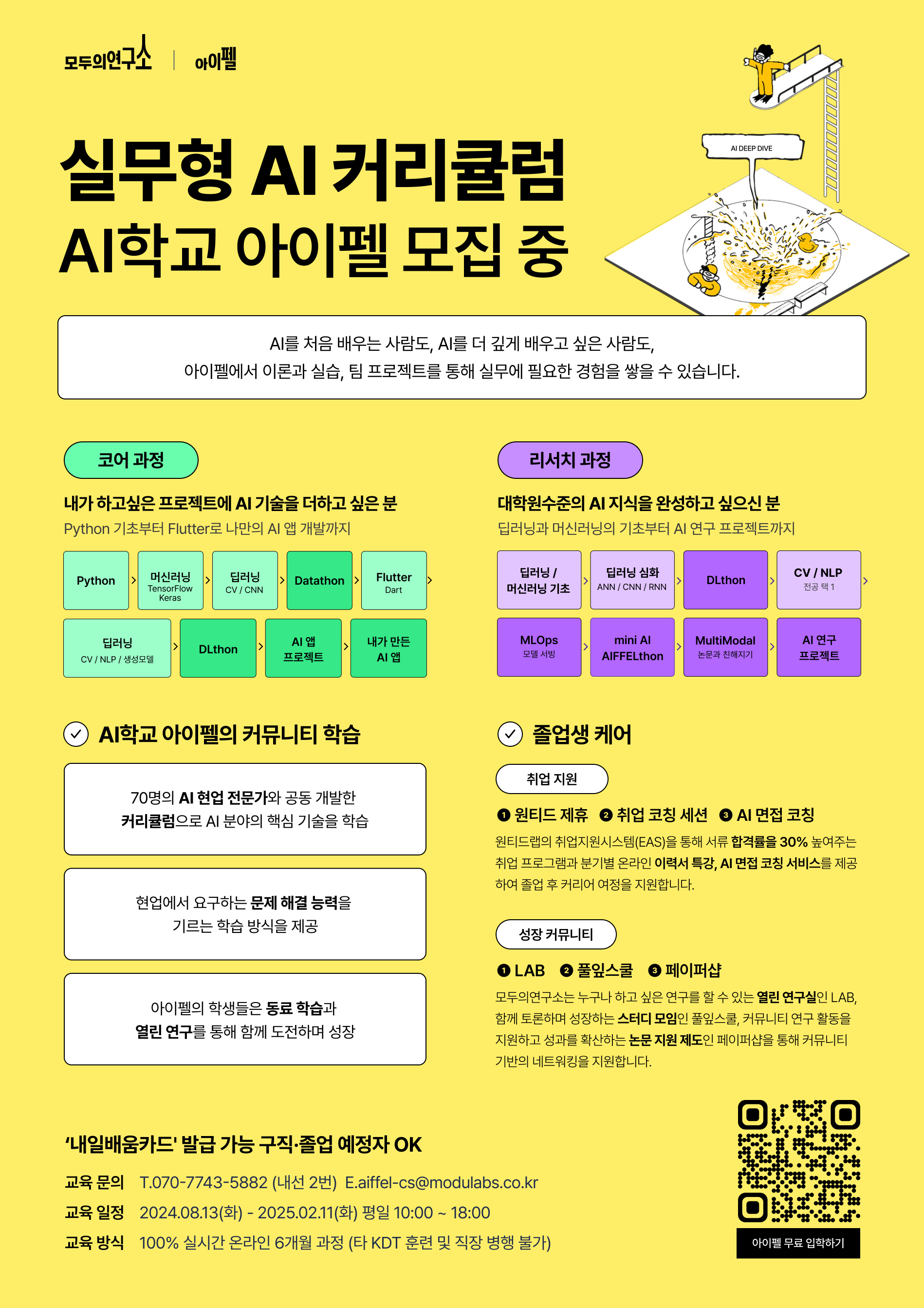 [๋ง๊ฐ์๋ฐ!] AIํ๊ต ์์ดํ ํฉ๋ฅํ์ฌ AI ์ ๋ฌธ๊ฐ๋ก ์ฑ์ฅํ์ธ์! ๋ฌด๋ฃ์ ํํ๊ธฐ!