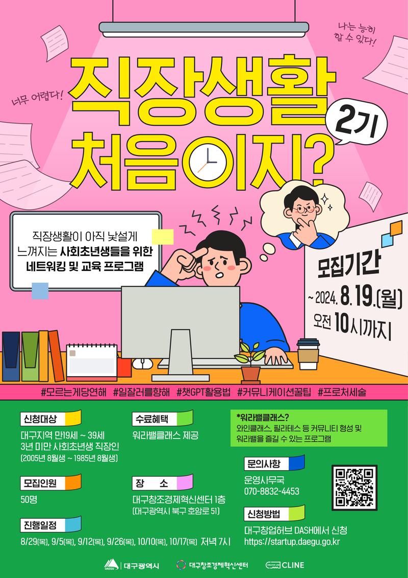 대구광역시와 (재)대구창조경제혁신센터에서는 사회 초년생 및 진로고민 직장인 등 청년들을 대상으로