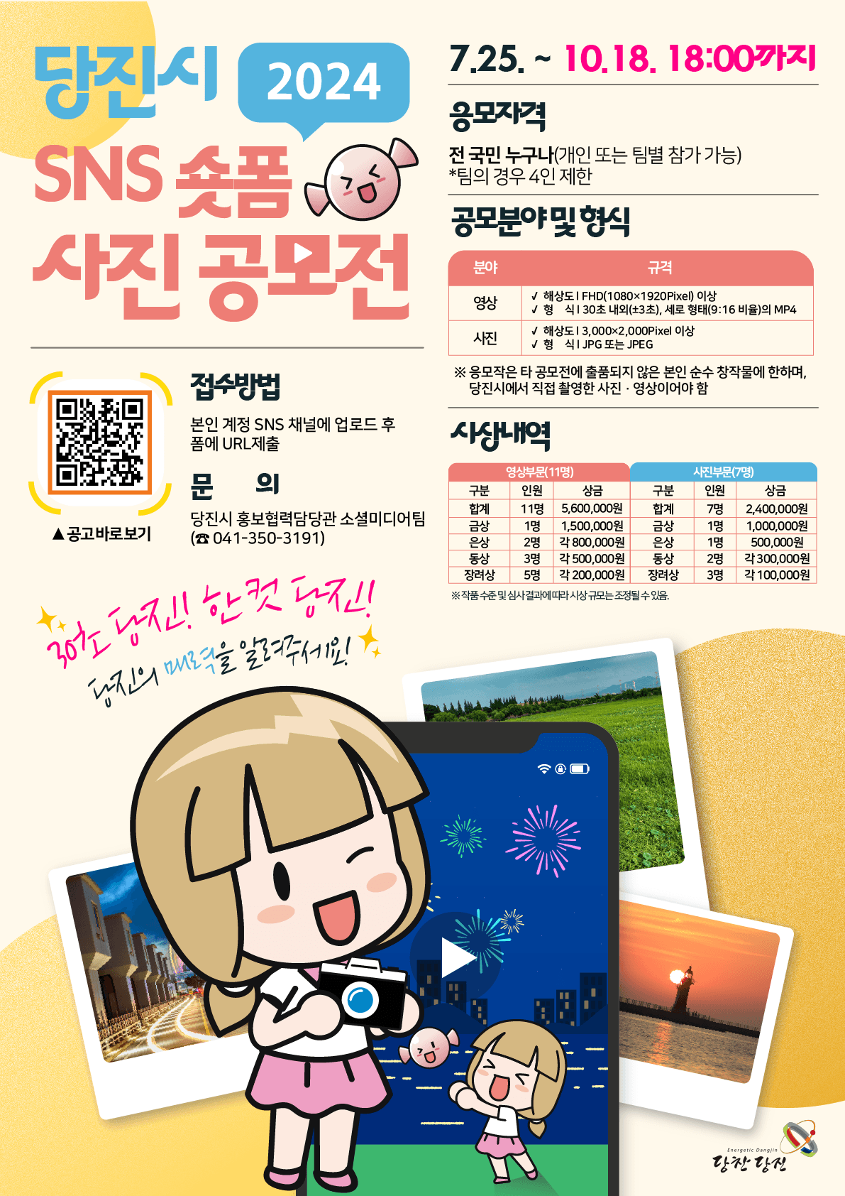 2024 당진시 SNS숏폼ㆍ사진 공모전을 시작합니다! 😘💓