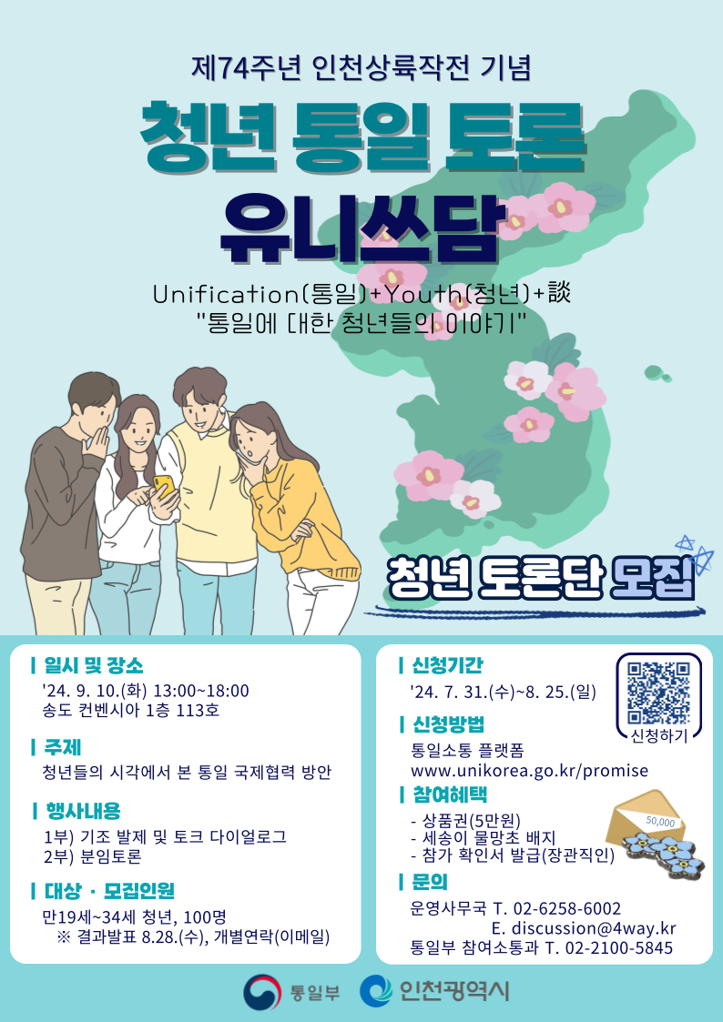 통일부에서 2024 제2차 청년토론 유니쓰담에 참여할 토론단을 모집합니다!