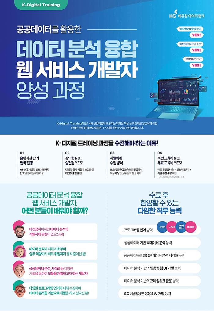 과정명 : [웹개발 + 데이터분석] 공공데이터를 활용한 데이터 분석 융합 웹 서비스 개발자 양성과정