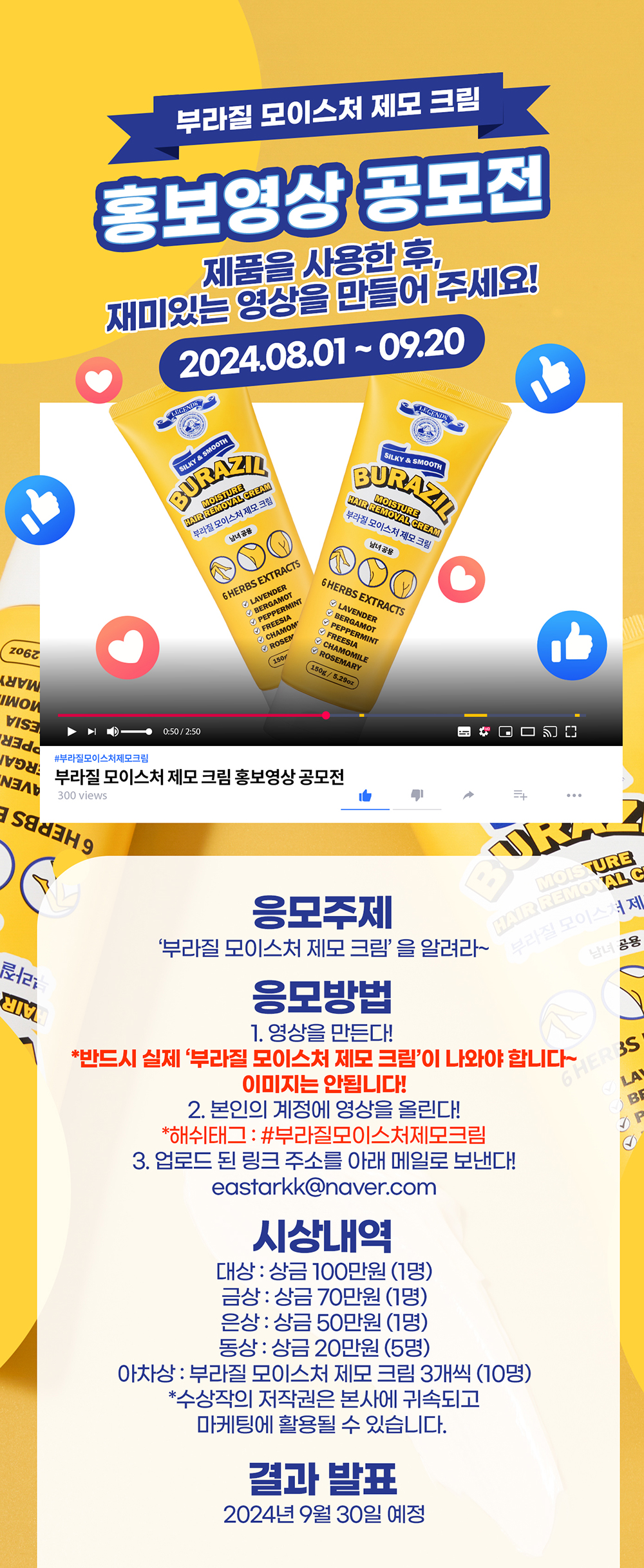 아차상 : 부라질 모이스처 제모 크림 3개씩 (10명)