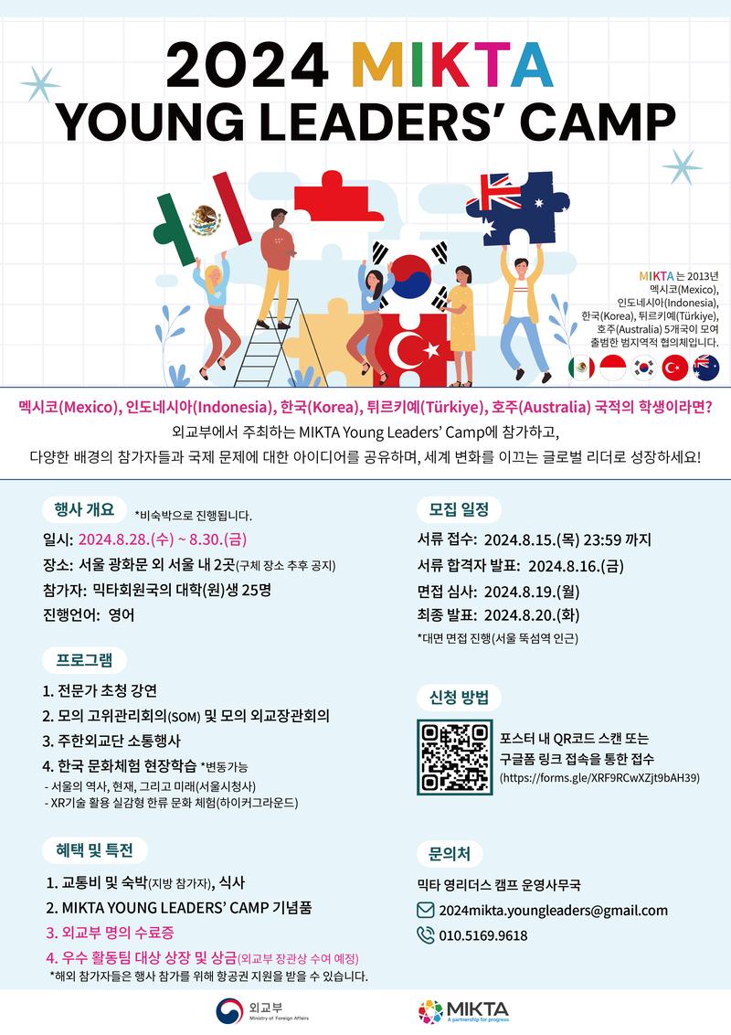 외교부가 2024 MIKTA Young Leaders Camp 참가자를 모집합니다.