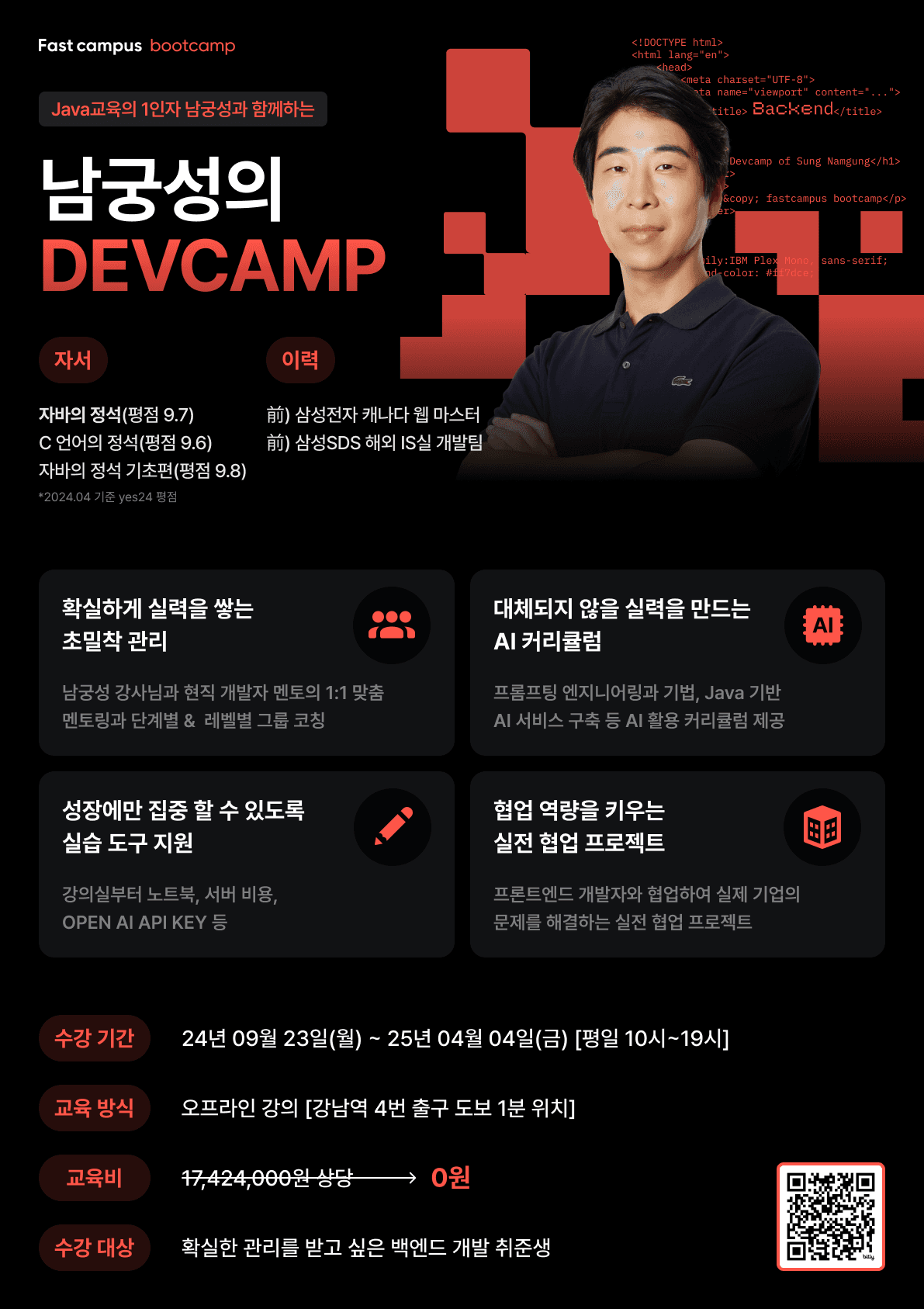 Java 교육 1인자 남궁성님이 드디어 국비지원 부트캠프로 돌아왔습니다