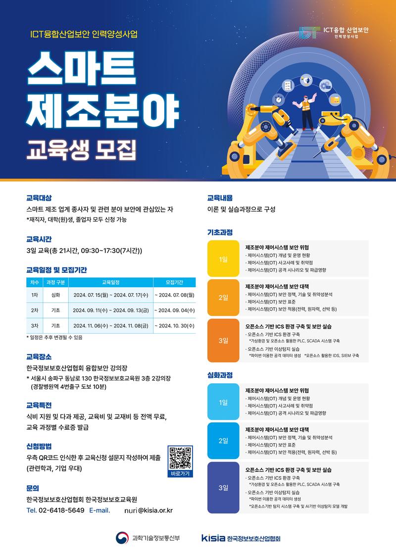 ICT융합산업보안 인력양성사업 스마트 제조 분야 교육생을 모집합니다.