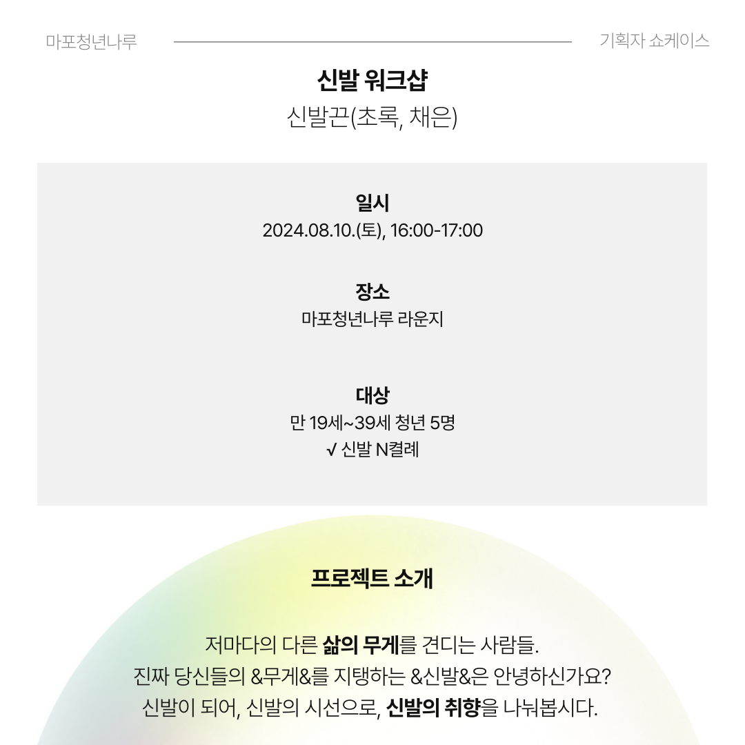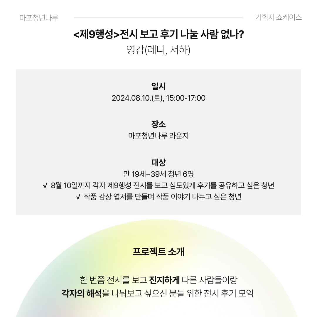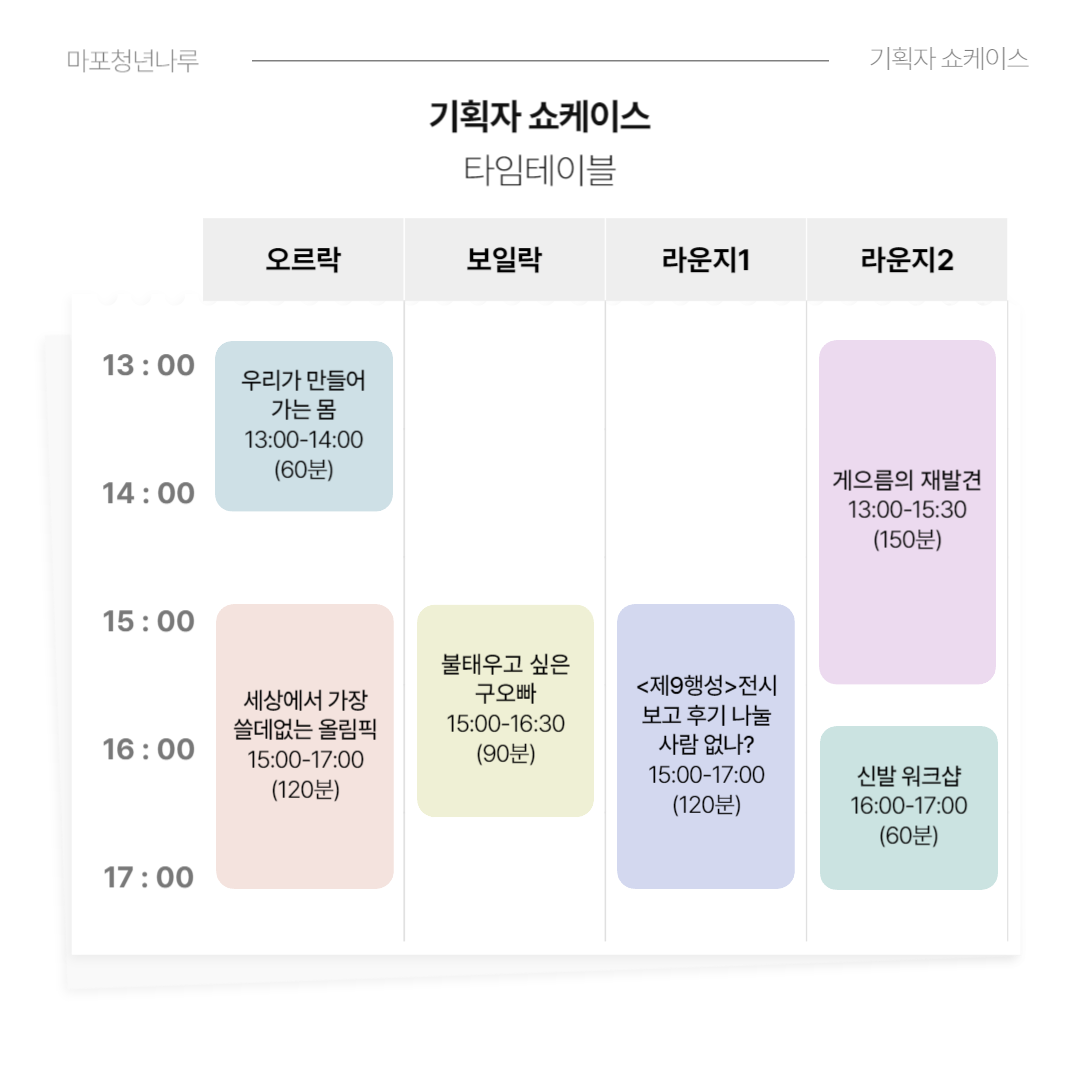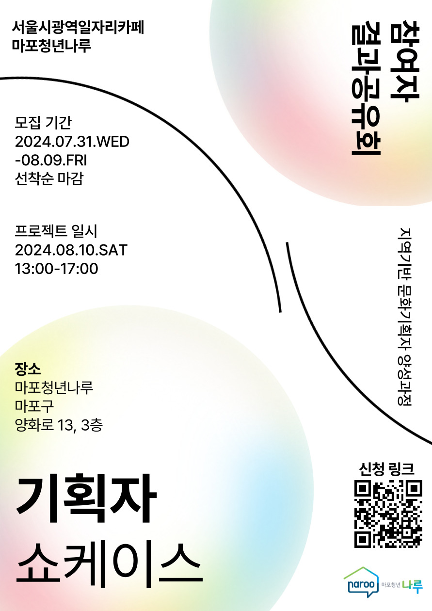 마포청년나루에서 <기획자 쇼케이스>에 함께할 여러분을 기다립니다 :)