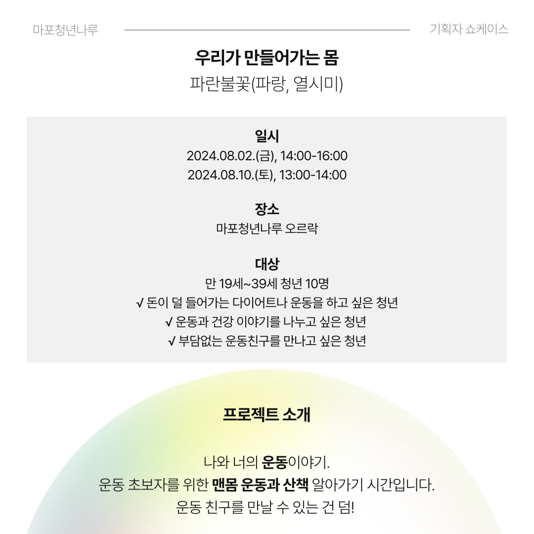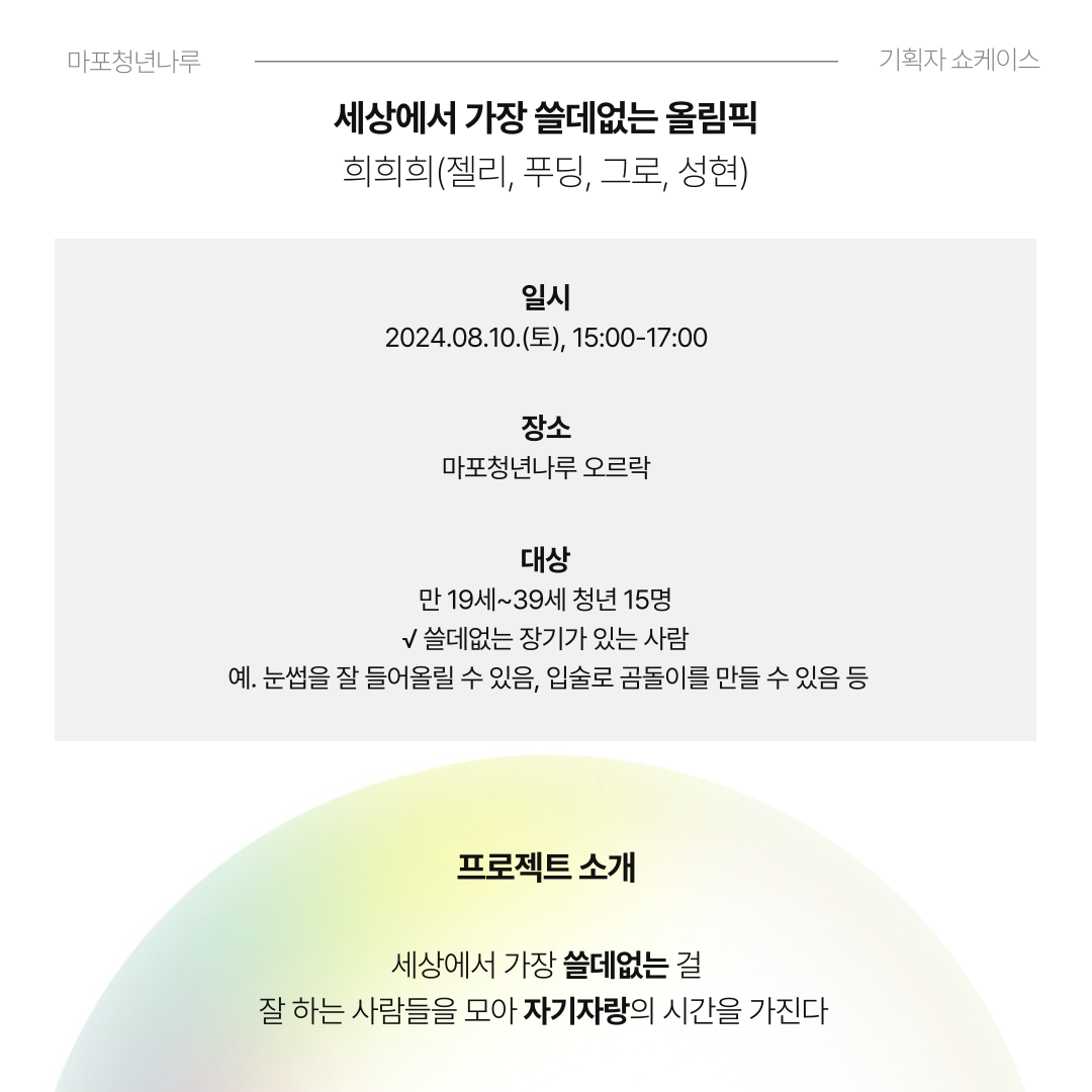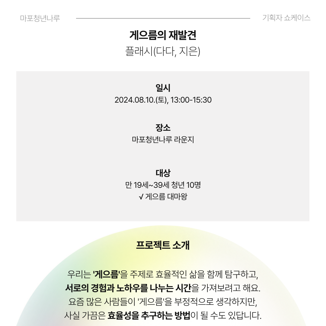 마포청년나루에서 <기획자 쇼케이스>에 함께할 여러분을 기다립니다 :)