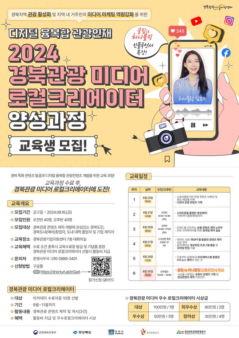 경북관광 미디어 로컬크리에이터 양성과정 교육생 모집(~8/16)