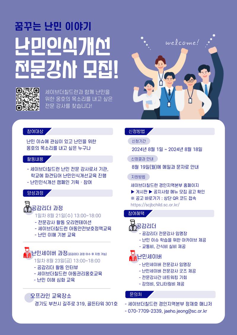 - 세이브더칠드런 난민 전문 강사로서 기관, 학교에 파견되어 난민인식개선교육 진행