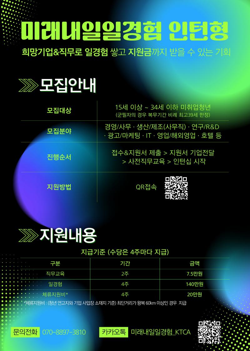 청년 인턴십 참여자 모집 - 전국/전직무 모집 중