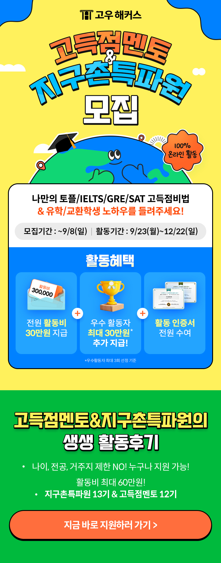- 고득점멘토 & 지구촌특파원 중복 지원 가능!