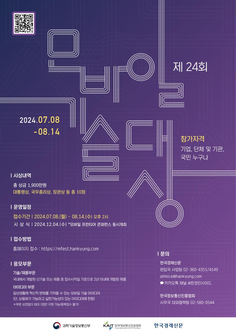 시 상 식 | 2024년 12월 4일(수) | 시상식 *모바일 프런티어 콘퍼런스 동시개최 | 코엑스 스튜디오 15 |