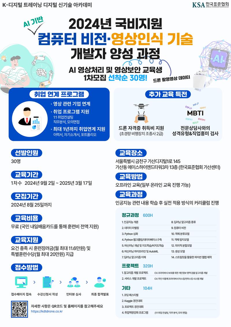 ☑️ AI 기반 컴퓨터 비전 / 영상인식 기술 개발자 양성 과정 모집 <https://kdtdrone.imweb.me/>