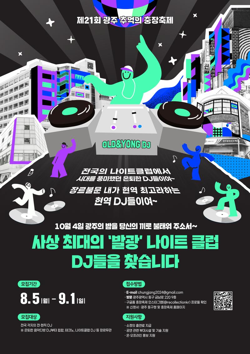 - 접수 시 E-mail 제목 : 충장축제 열정 발광 나이트 DJ 참여_OOO(신청자명)