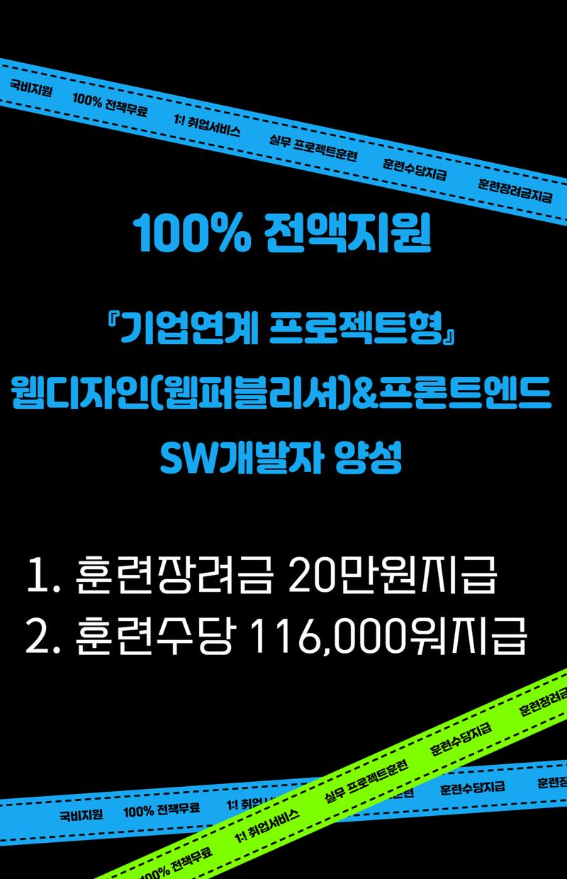 ✔ 수강료 전액 국비지원(훈련비+교재비+취업지원비)