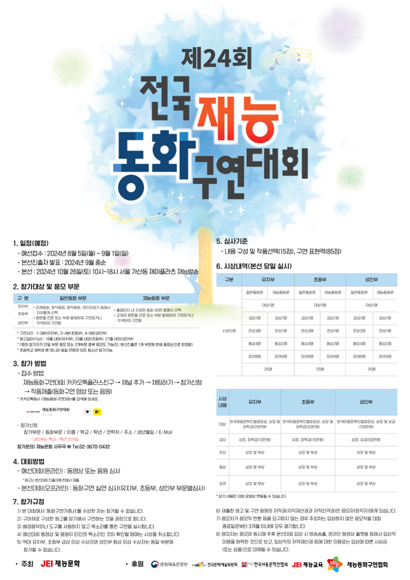 후원 : 문화체육관광부, 한국문화예술위원회, 한국아동문학인협회, 재능교육, 재능TV, 재능동화구연협회