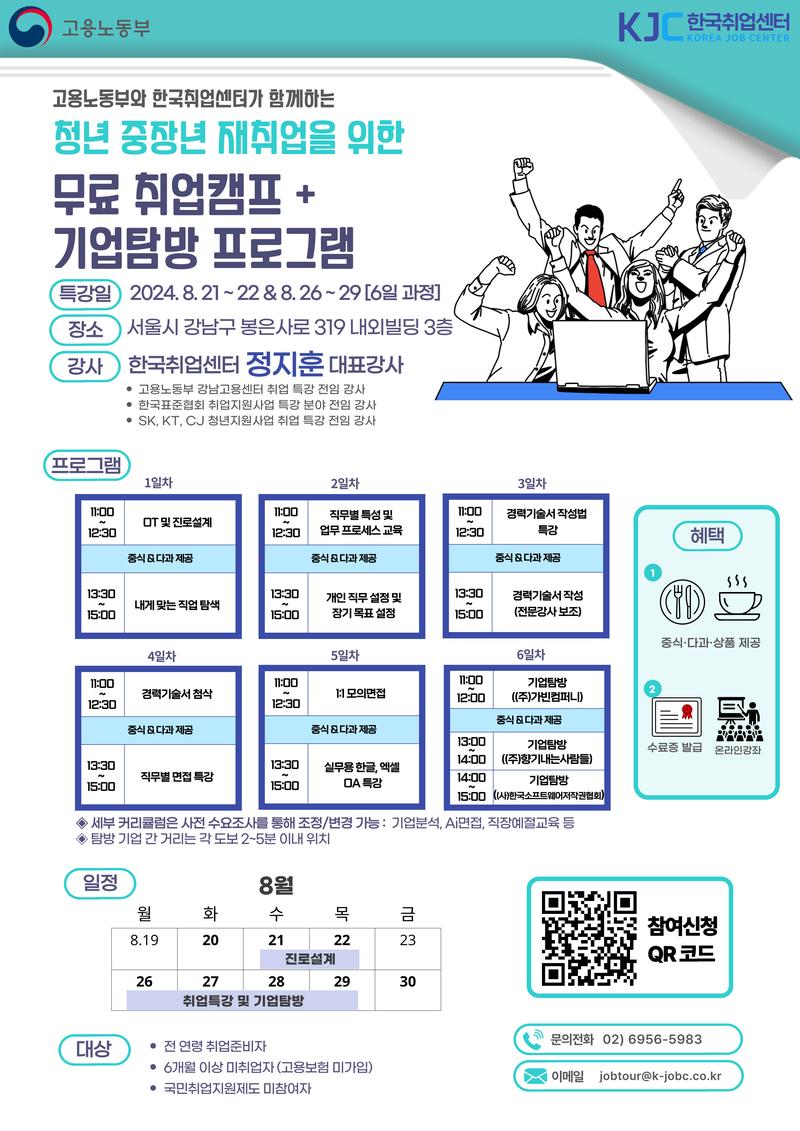 ● 사업명 : [고용노동부-한국취업센터] 취업/재취업자를 위한 무료 취업캠프 + 기업탐방 프로그램