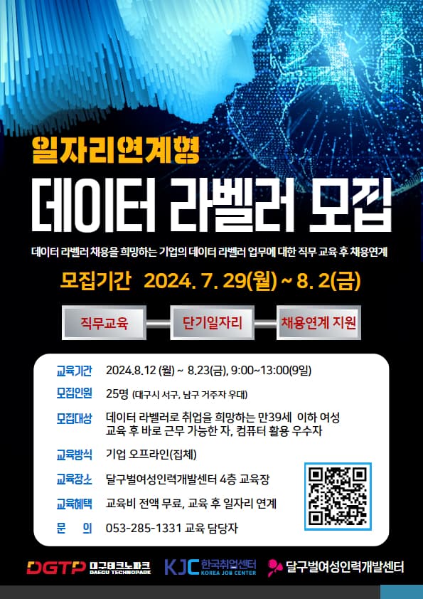 [한국취업센터] 일자리 연계형 데이터 라벨러 모집(직무교육, 단기일자리, 채용연계지원)