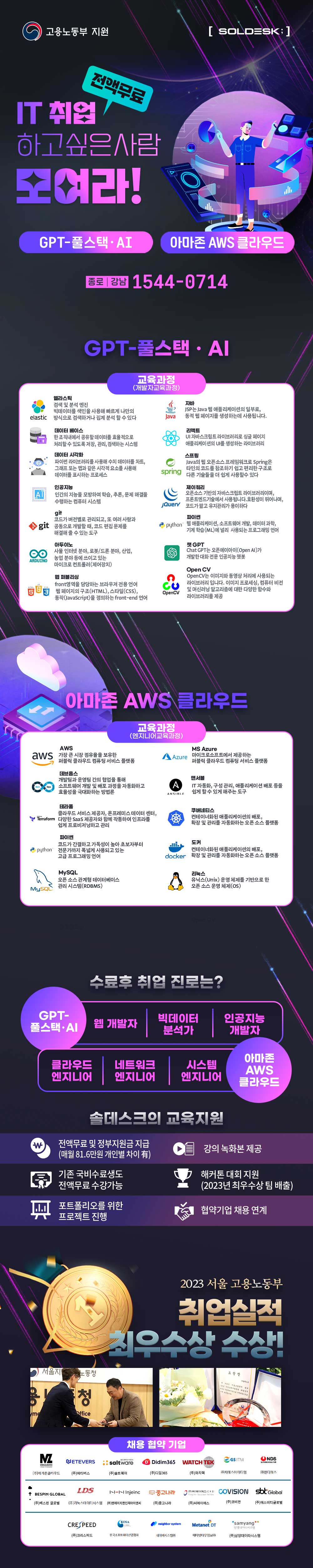 [솔데스크] IT취업예정자 무료교육 / GPT-풀스택·AI, 멀티클라우드