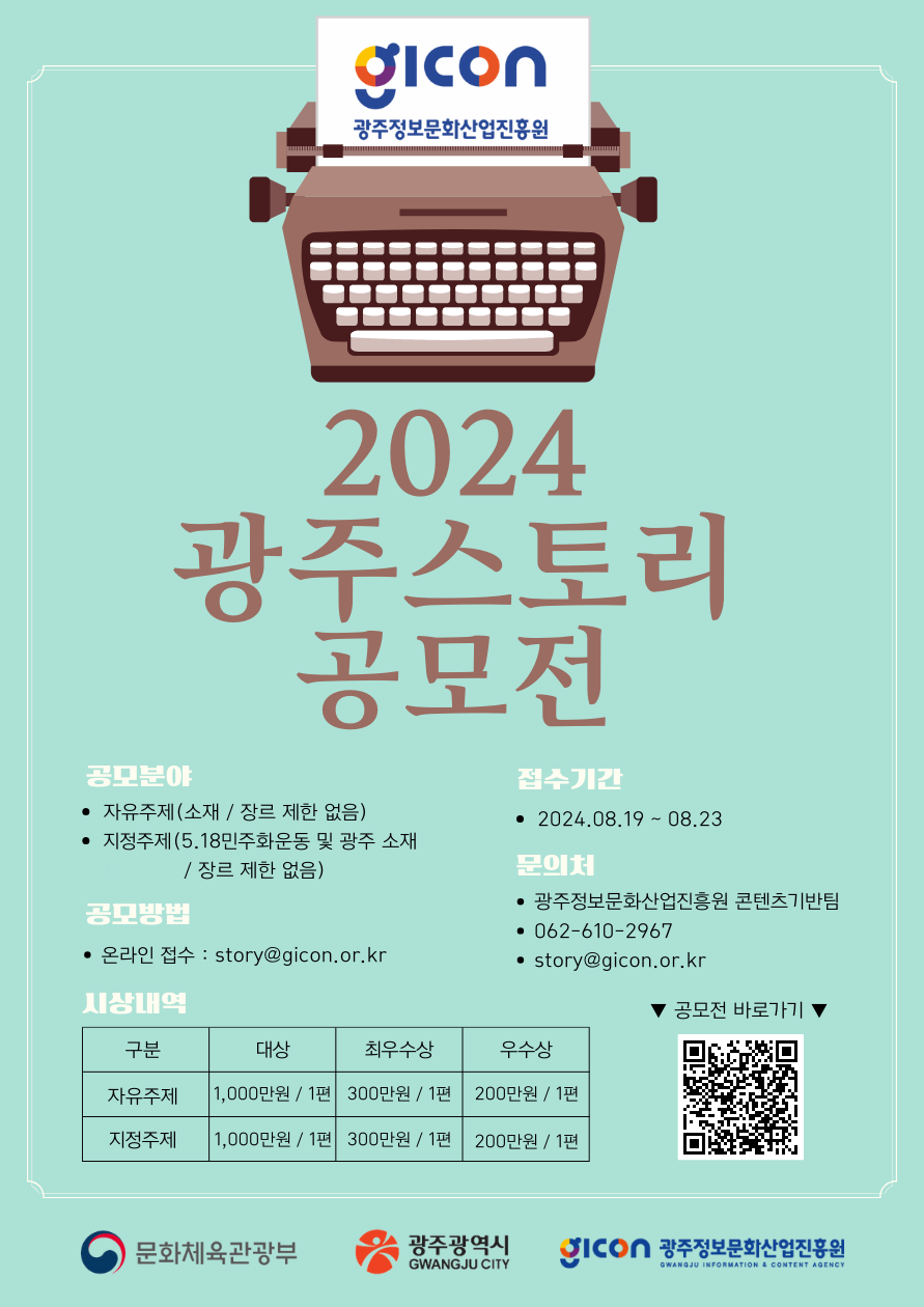 1등 상금 천만원! <제3회 2024 광주 스토리 공모전>