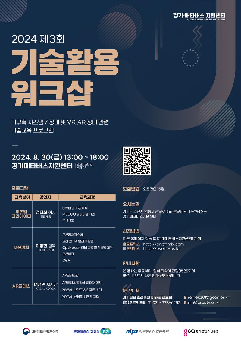 여러분을 경기메타버스지원센터에서 개최하는 2024년 제3회 기술활용워크샵에 초대합니다! 🎉