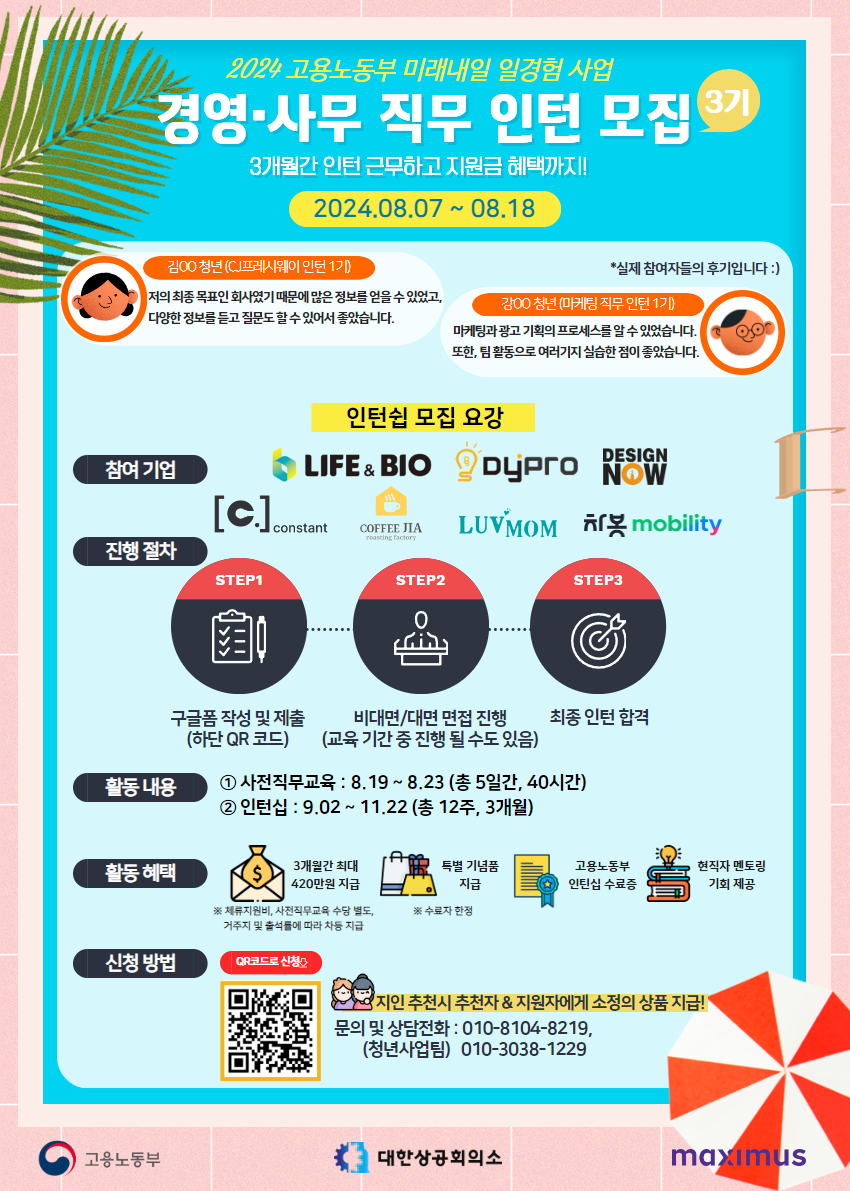 📞 (주)맥시머스 청년사업팀 : 010-8104-8219