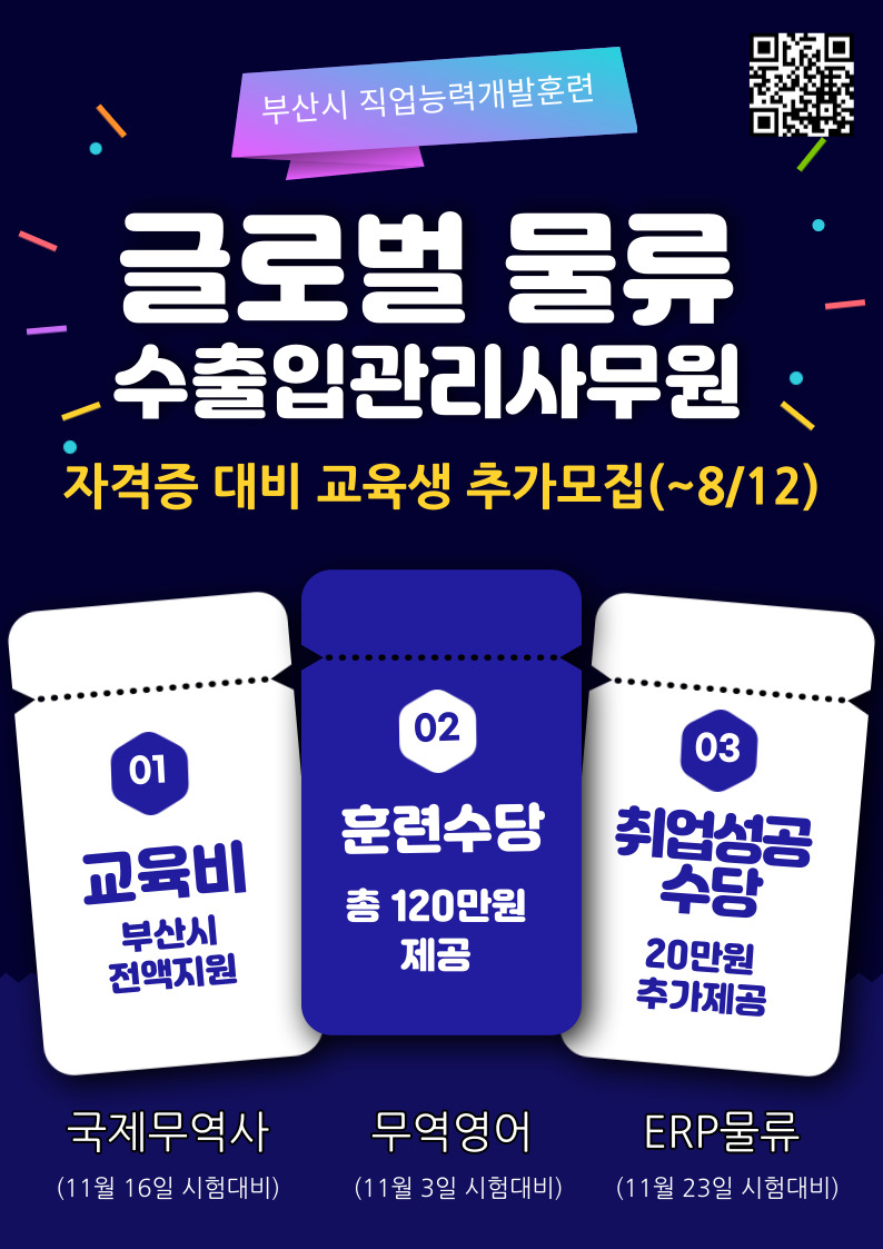[글로벌 물류 수출입관리사무원 교육생 모집]
