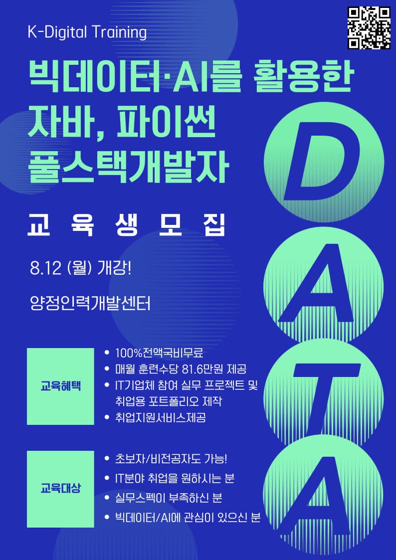 - 교육명 : 빅데이터와 AI를 활용한 자바, 파이썬 풀스택 개발자