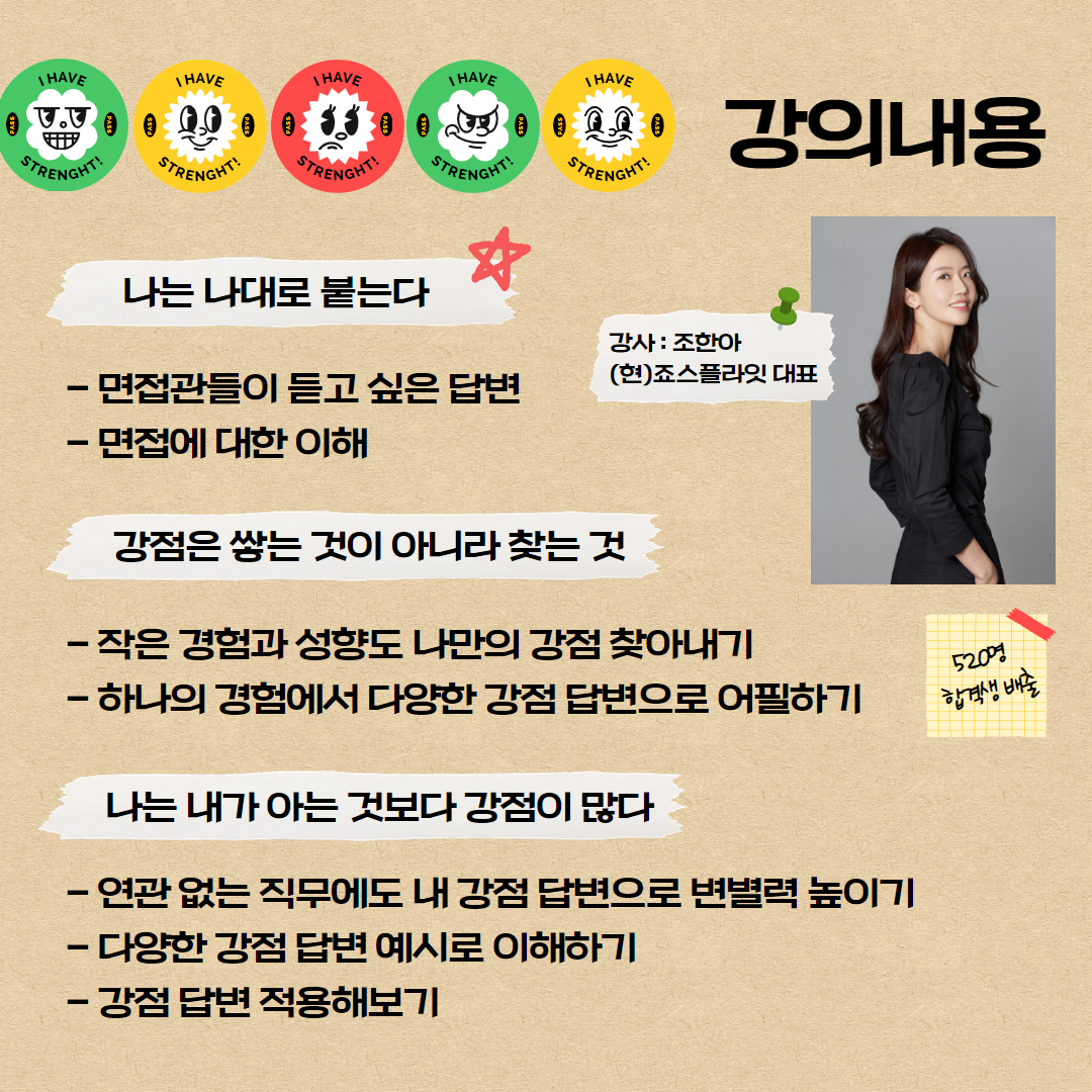 ✔ 강점과 스토리를 답변에 잘 녹여내 합격을 목표하는 청년!
