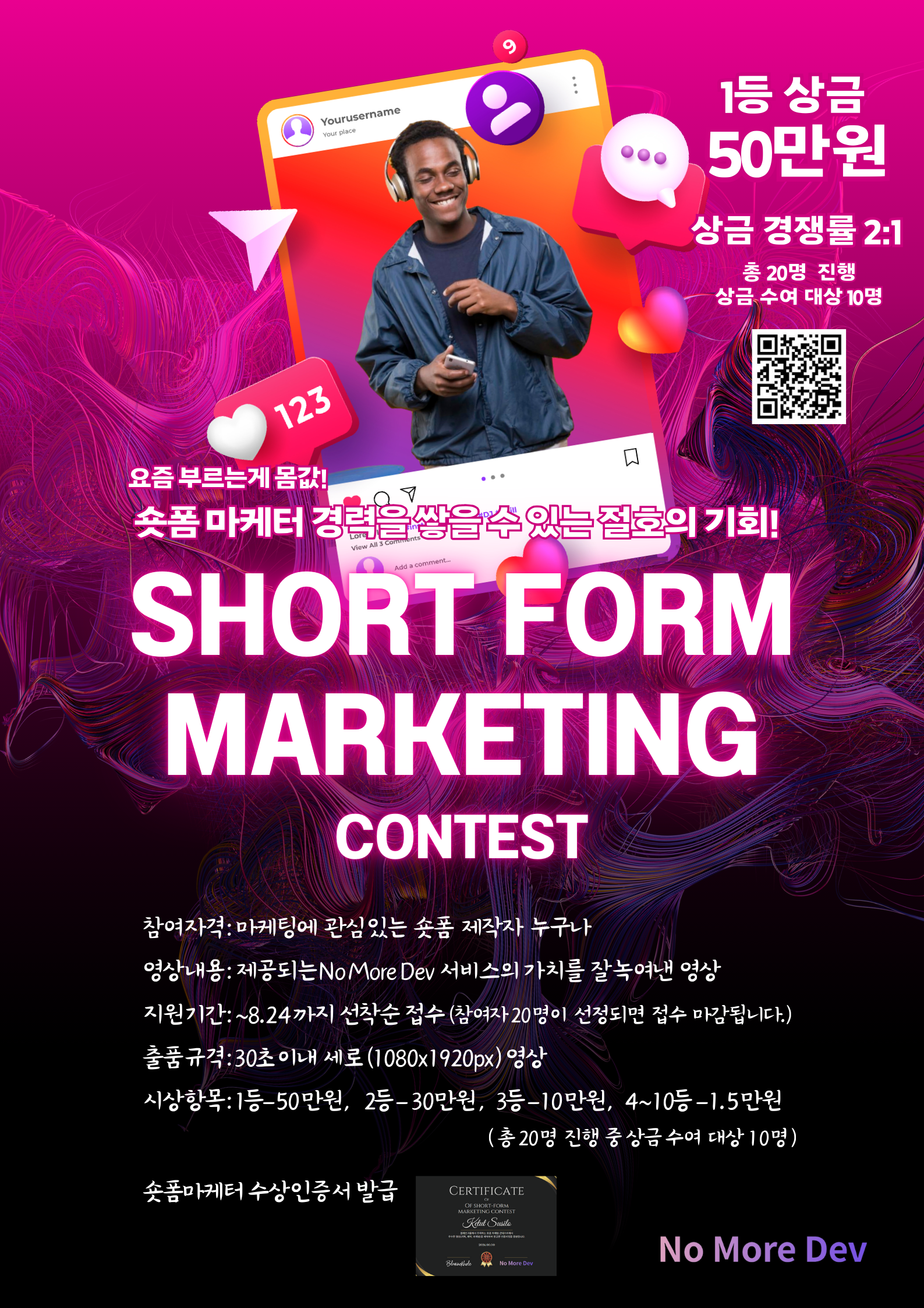 · 공모 주제: NoMoreDev 서비스의 아래 장점을 녹여낸 영상을 제작해주세요.
