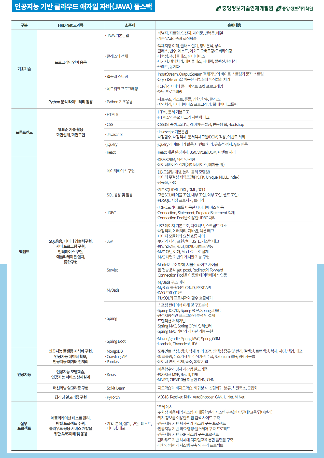 (산대특) 인공지능 기반 클라우드 애자일 자바(JAVA) 풀스택 개발자 양성과정