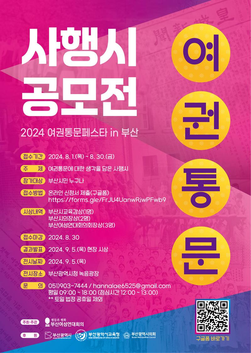 - 구글폼 링크 : 2024 여권통문페스타인부산 사행시 공모 신청서 (google.com)