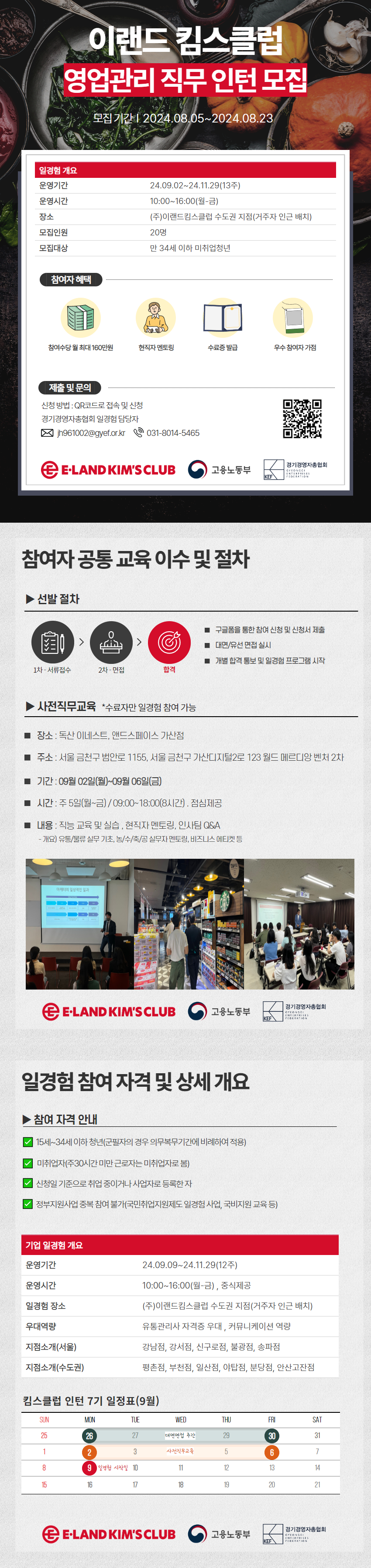장소 : (주)이랜드킴스클럽 서울/경기 16개 지점(참여자 희망 지점 우선 배치)