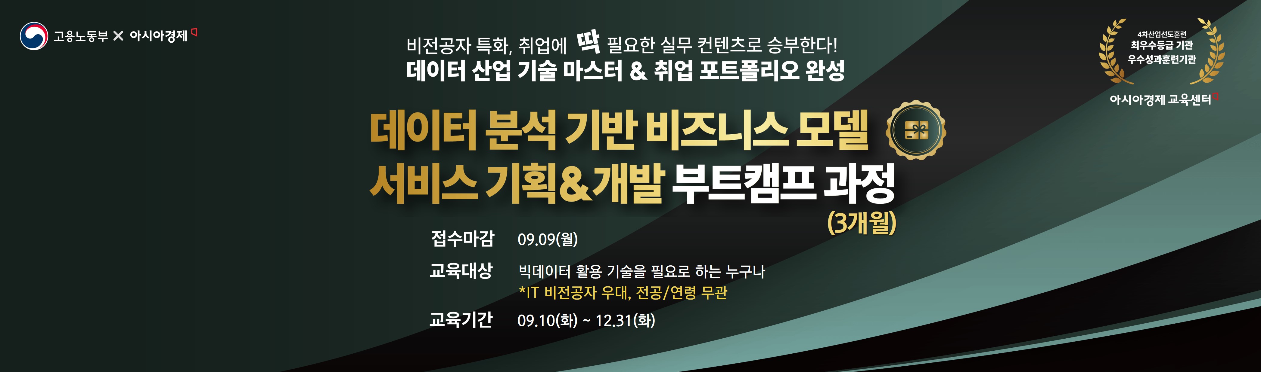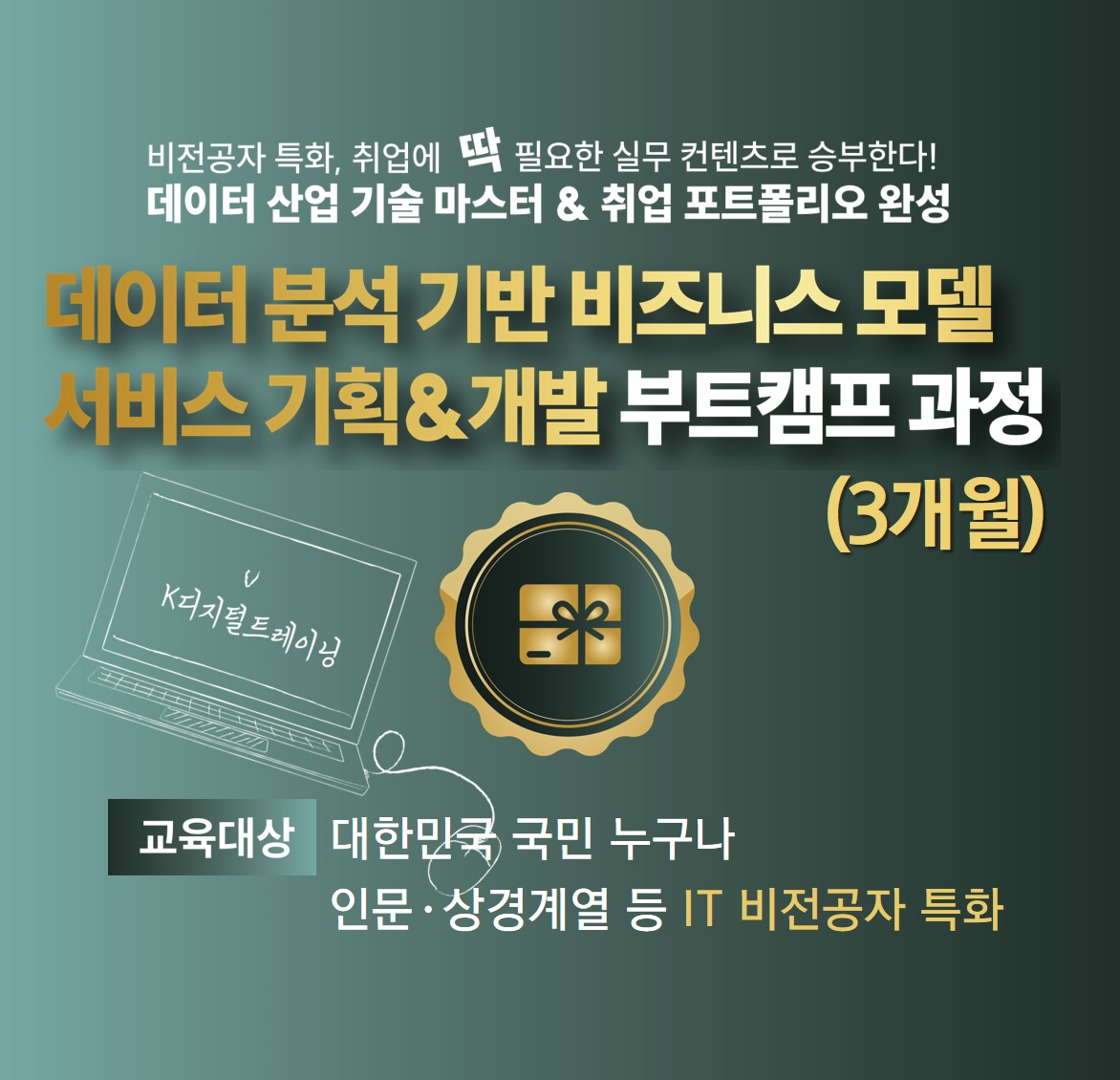 - 빅데이터 분석 및 서비스기획 부트캠프 과정 (564시간 / 3개월)