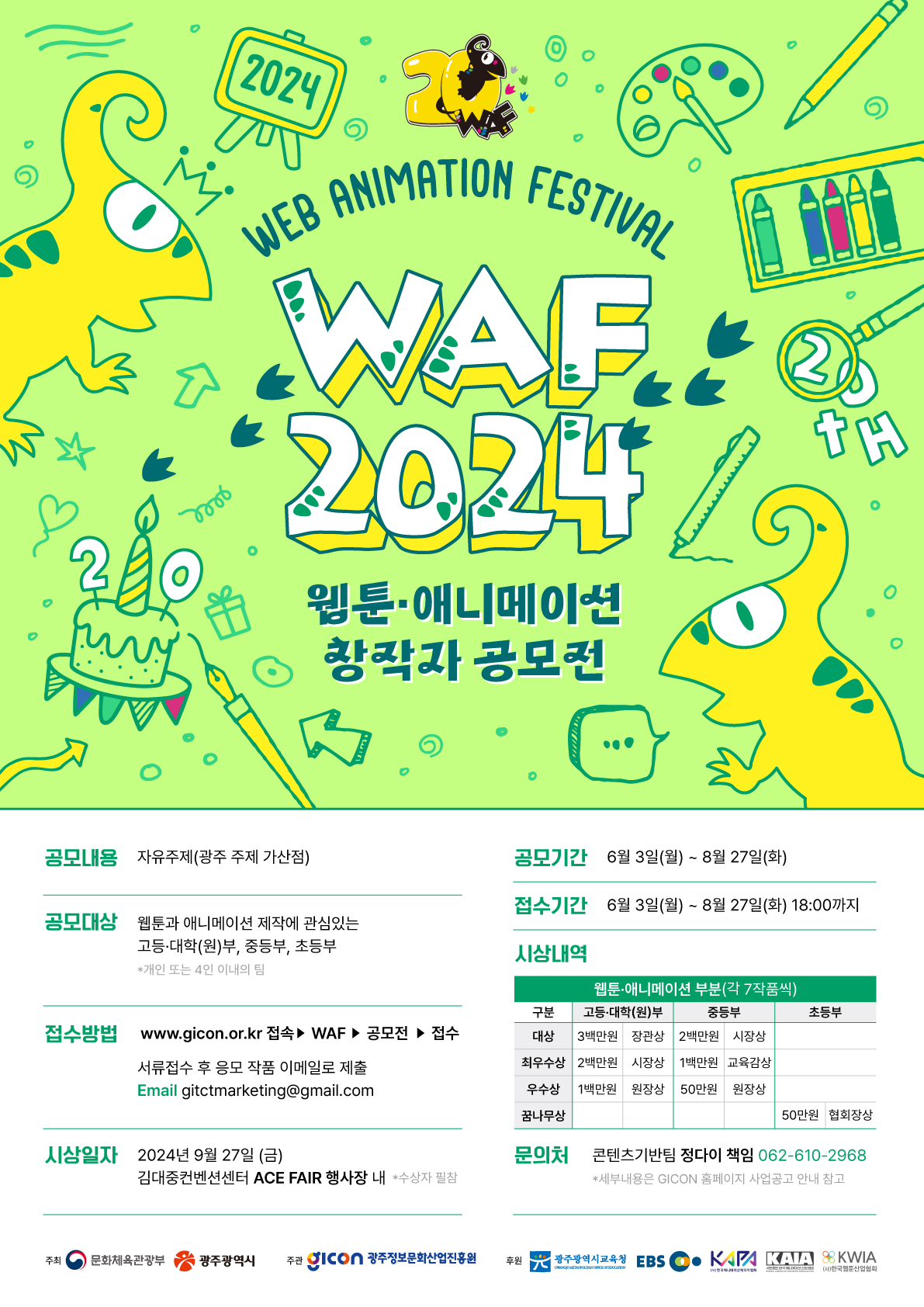 접수방법 : www.gicon.or.kr 접속 -> WAF -> 공모전 -> 접수