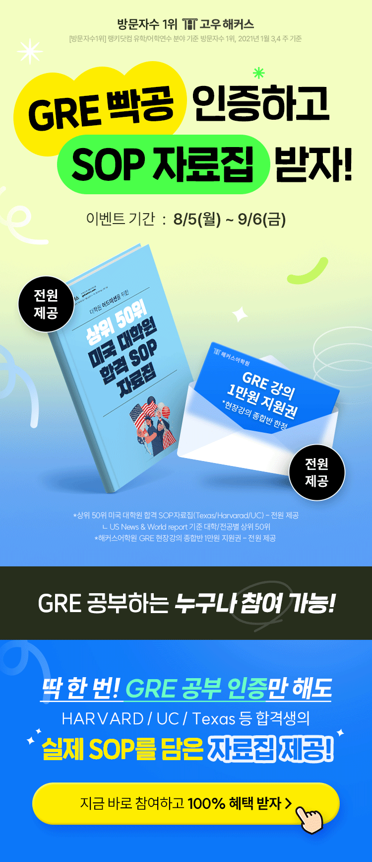 🎁 해커스 어학원 GRE 강의 1만원 지원권