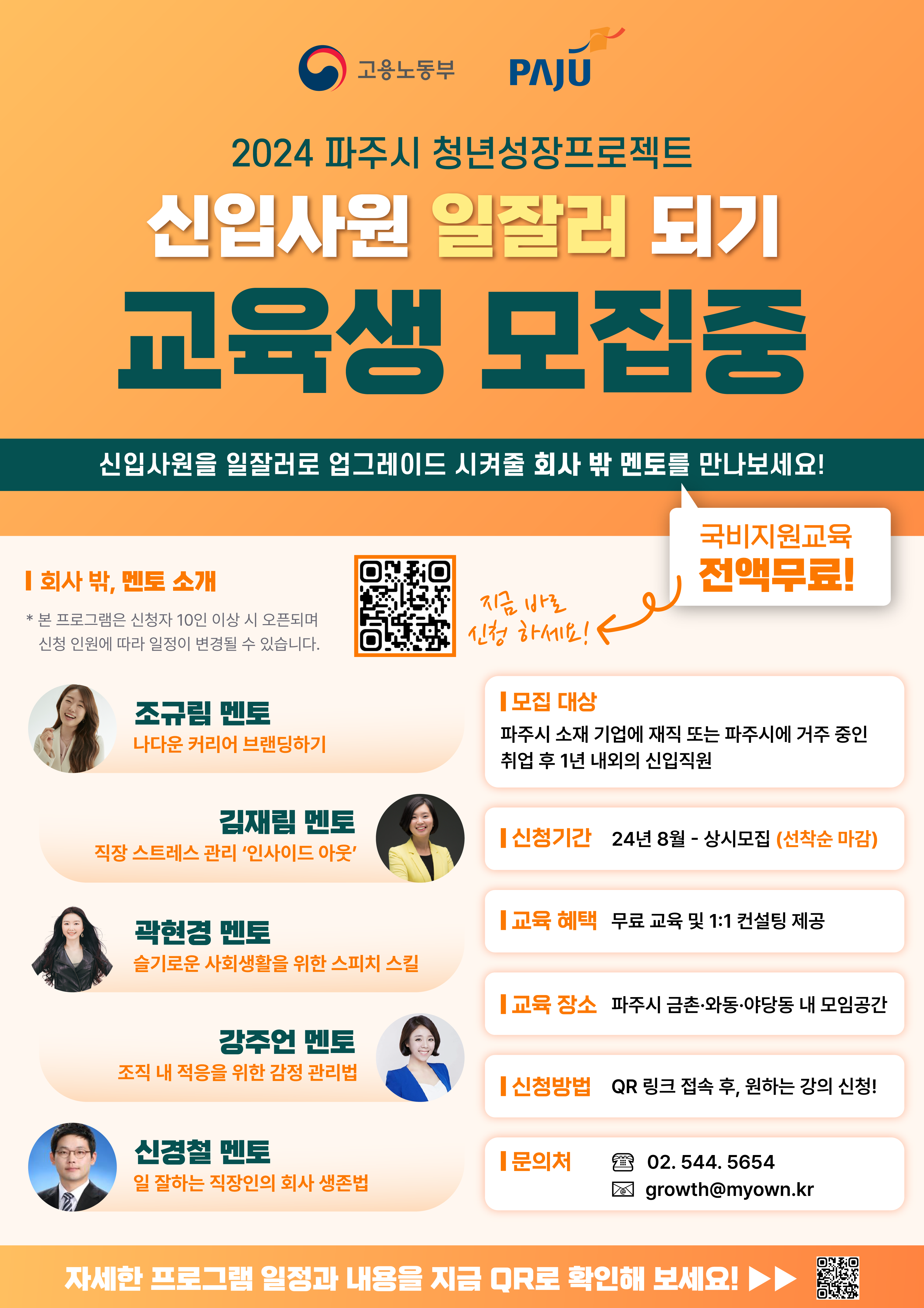 [무료교육] 동대문구·파주시 신입사원 레벨업 교육 안내 (청년성장프로젝트)
