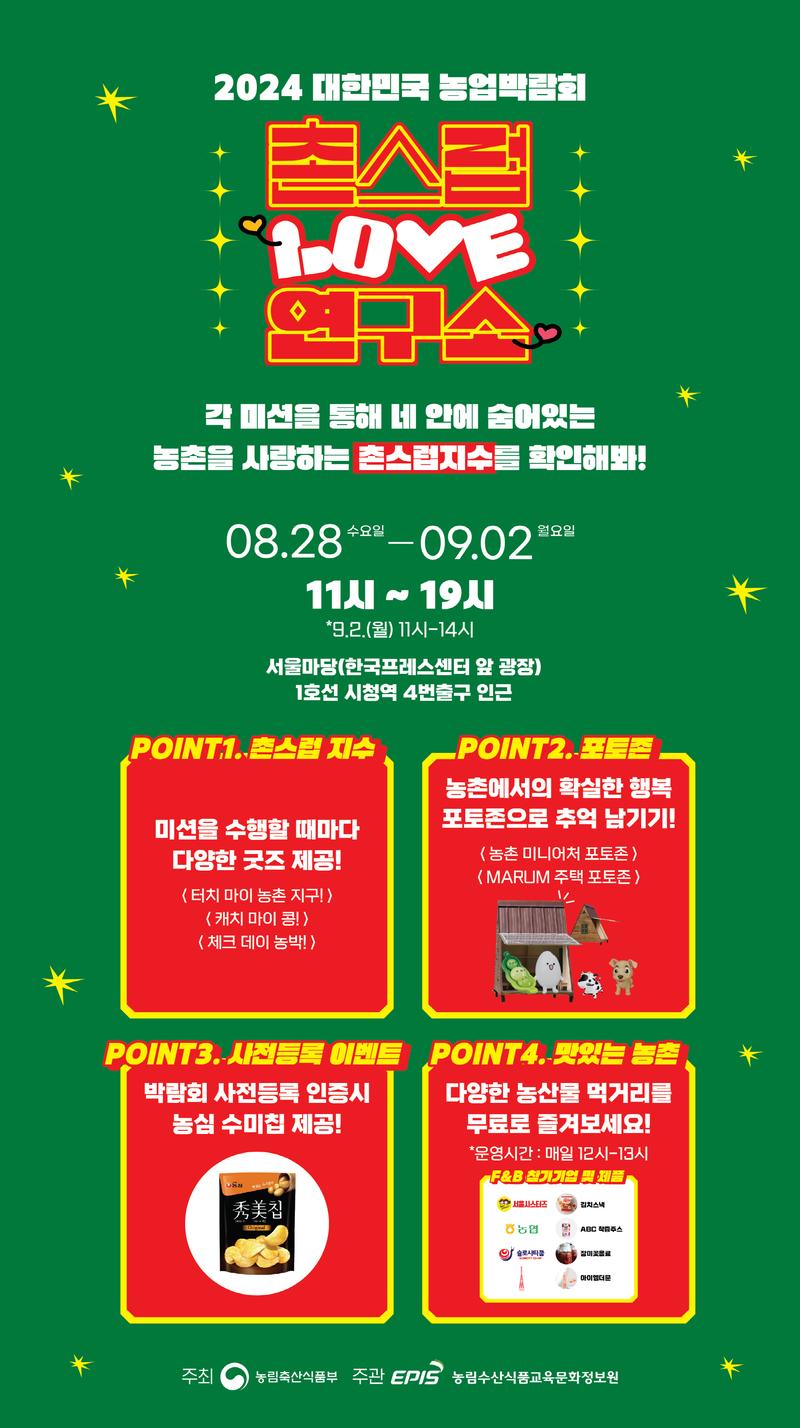 #2024대한민국농업박람회 #AGRIEXPOKOREA2024 #농림축산식품부 #농림수산식품교육문화정보원 #촌캉스 #농촌 #촌스럽연구소 #팝업 #서울마당